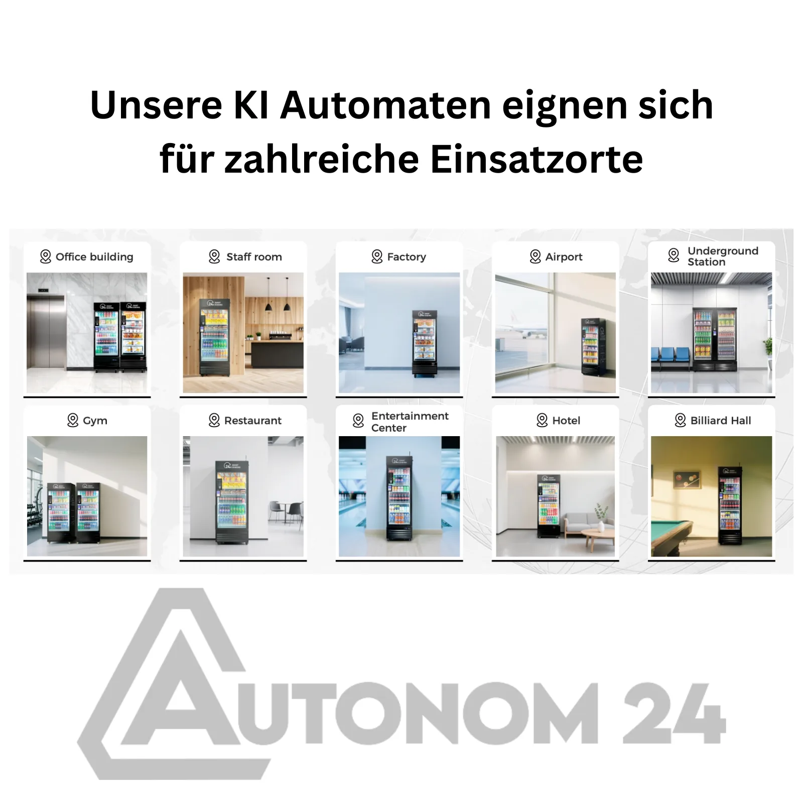 Dieser Automat kombiniert KI-Technologie, Kühlfunktion und vollautomatisierte Produkterkennung. Ideal als Getränkeautomat, Snackautomat, Self-Service Kühlautomat oder für gemischte Waren. Passt optimal in Büros, Fitnessstudios, Hotels, Firmengebäude, Eingangsbereiche oder öffentliche Standorte mit viel Laufkundschaft.